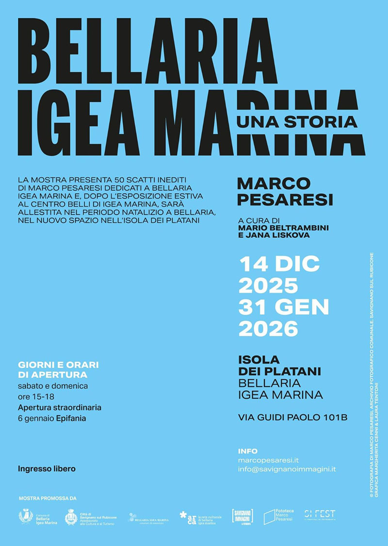 Dopo il grande successo al Centro Culturale "Vittorio Belli" - Arte, Musica e Ambiente di Igea Marina, grazie alla collaborazione con la Fototeca Marco Pesaresi del Comune di Savignano Immagini, la mostra "Bellaria Igea Marina una storia - Fotografie di Marco Pesaresi" si sposta sull'Isola dei Platani in via P. Guidi 101/b.